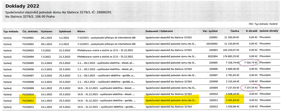 fakturu z roku 2022 č. VF 220003 byla uhrazena 8.10.2024, čímž byly srovnány