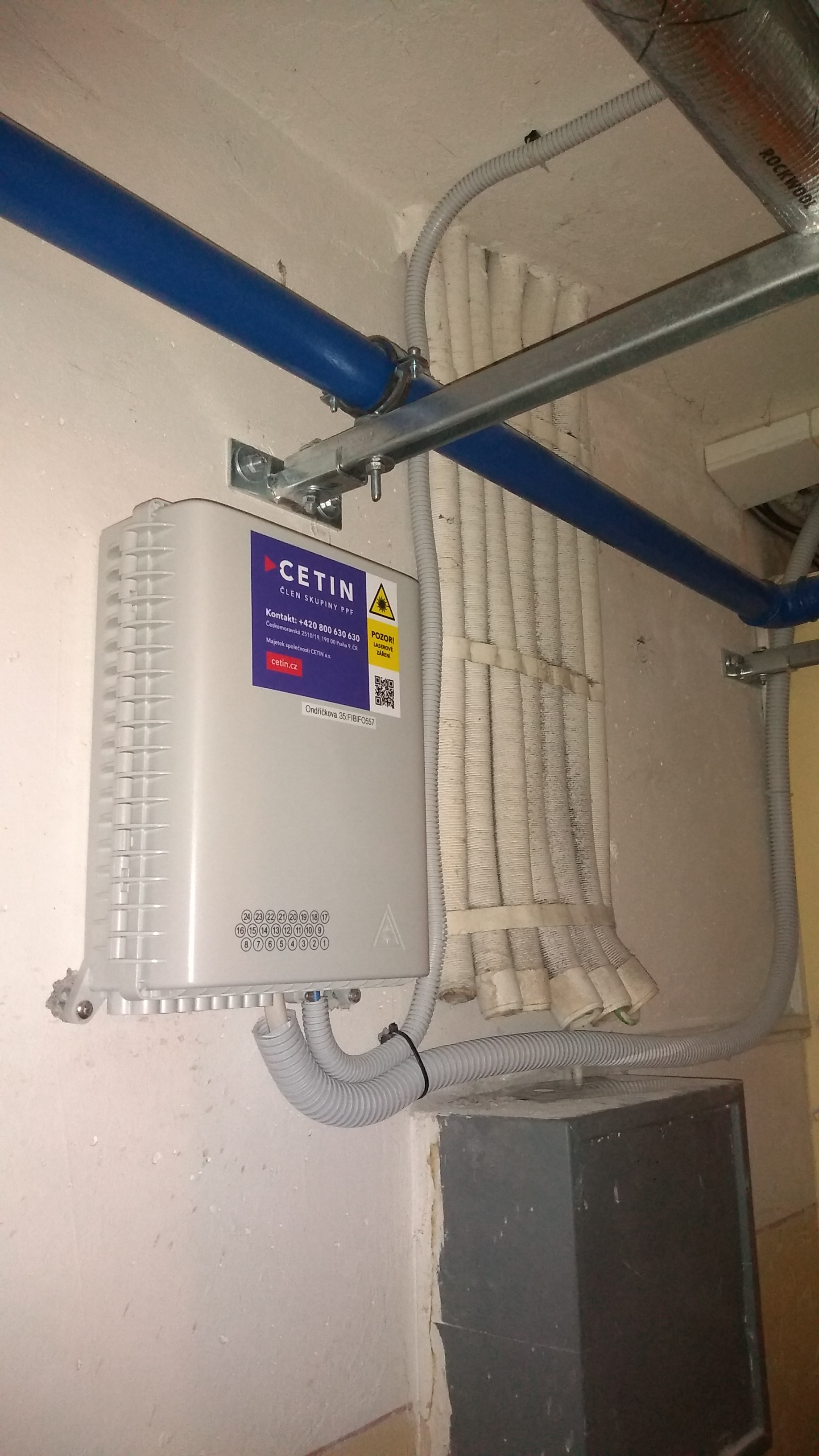 dnes jsem převzal dokončené rozvody Cetinu v našich vchodech. Páteřní vodorovná kabeláž
